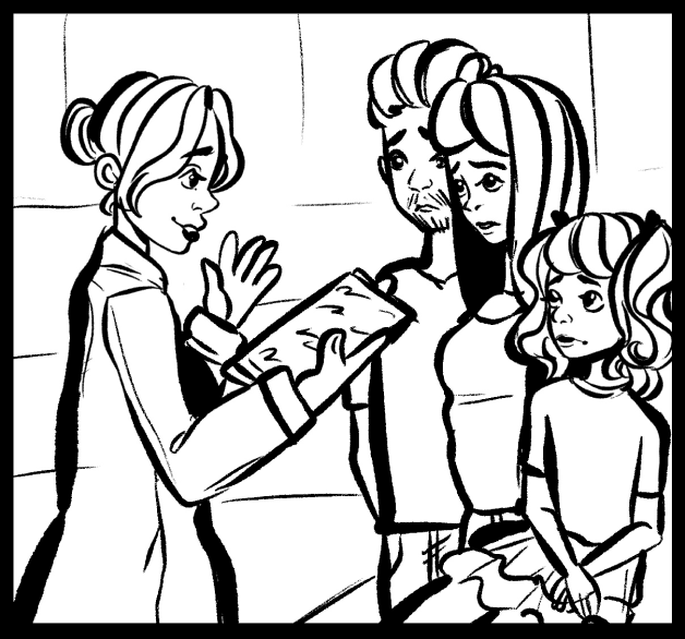 The doctor explains the diagnosis; the child feels confused.