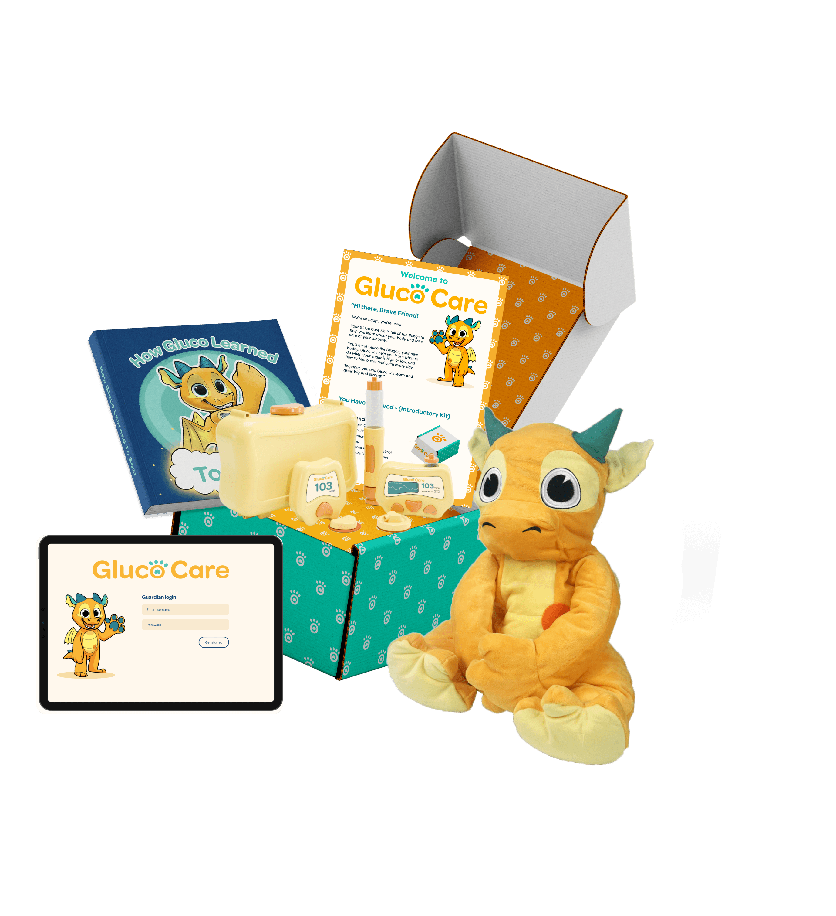 GlucoCare is a collaborative project designed to support children with Type 1 diabetes through engaging starter and monthly kits that build confidence, routine, and emotional resilience.
